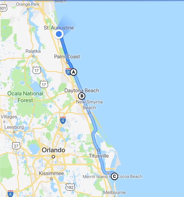South to Cocoa Beach, where I’ll spend two nights