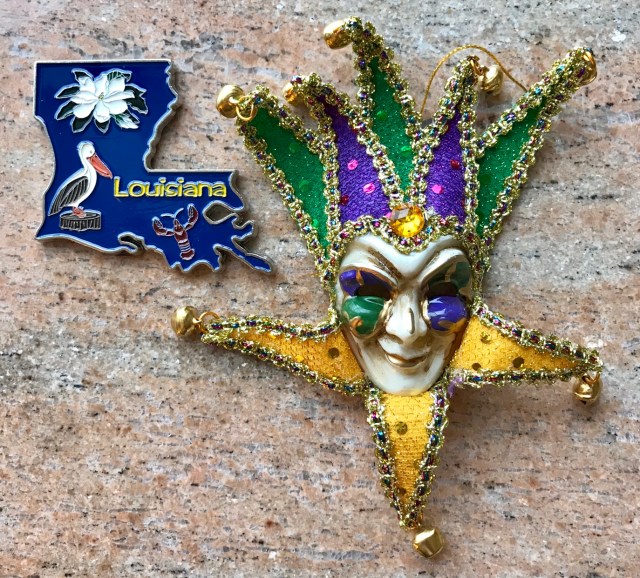 Decided to go with two. A fairly standard state magnet plus a New Orleans Mardi Gras mask