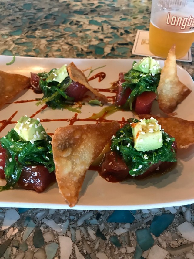 Local beer (from Houston) and tuna poke at my hotel’s tiki bar