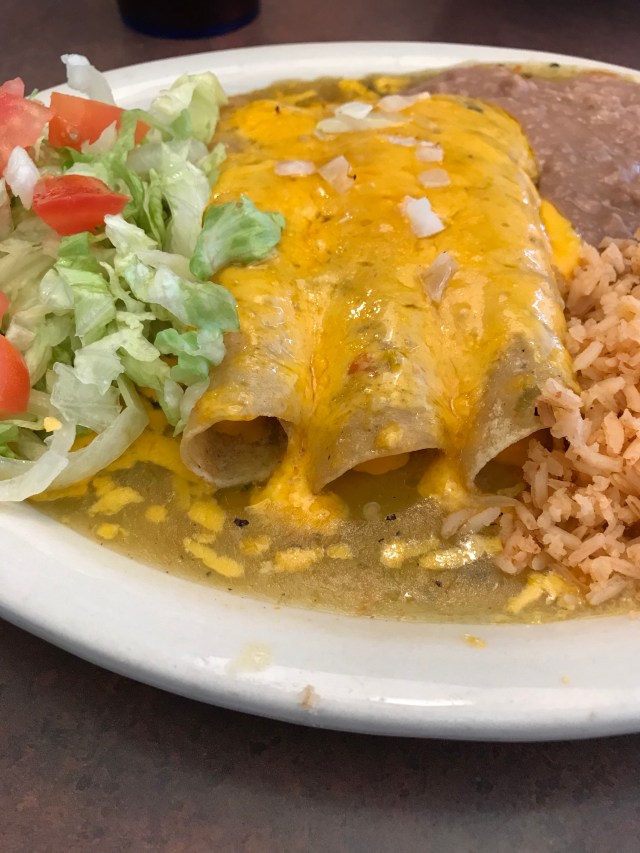 Cheese enchiladas with green chile sauce